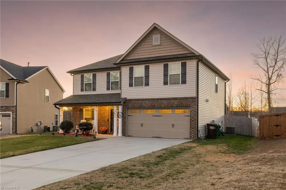 New Price and Open House 1/25 1-3PM! Nestled in a sought-after neighborhood on a serene cul-de-sac, this 3-bedroom, 2.5 bathroom home offers the perfect blend of comfort and style. Enjoy breathtaking sunset views from your backyard, complete with a covered deck, patio, and fenced-in area, the ideal spot for relaxing or entertaining. Inside, the open floor plan seamlessly connects the kitchen, dining room, and living room, where a striking stone fireplace creates a cozy spot. The home also features accent walls and stylish paint throughout, adding a unique touch of character. Upstairs, a spacious family room offers a versatile retreat for lounging or recreation. Conveniently located near all the Triad has to offer, this property combines modern living with easy access to shopping, dining, and entertainment.